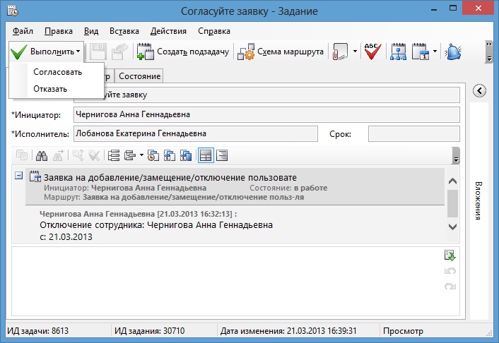 Заявка, поданная рядовым сотрудником, должна быть согласована руководителем подразделения.